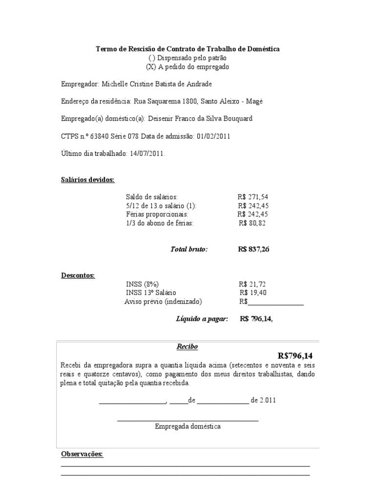 Coleção completa Exemplo De Recibo De Rescisão De Empregada Doméstica.