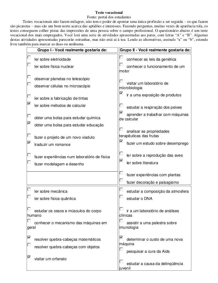 Aqui estão informações detalhadas sobre Exemplo De Teste Vocacional Para Imprimir.