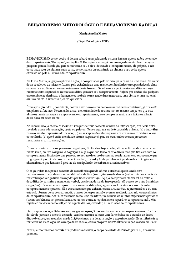 Doc Behaviorismo Metodologico E Behaviorismo Radical Vanessa