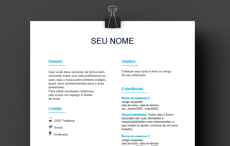 Fonte de : modelocurriculopronto.com.br