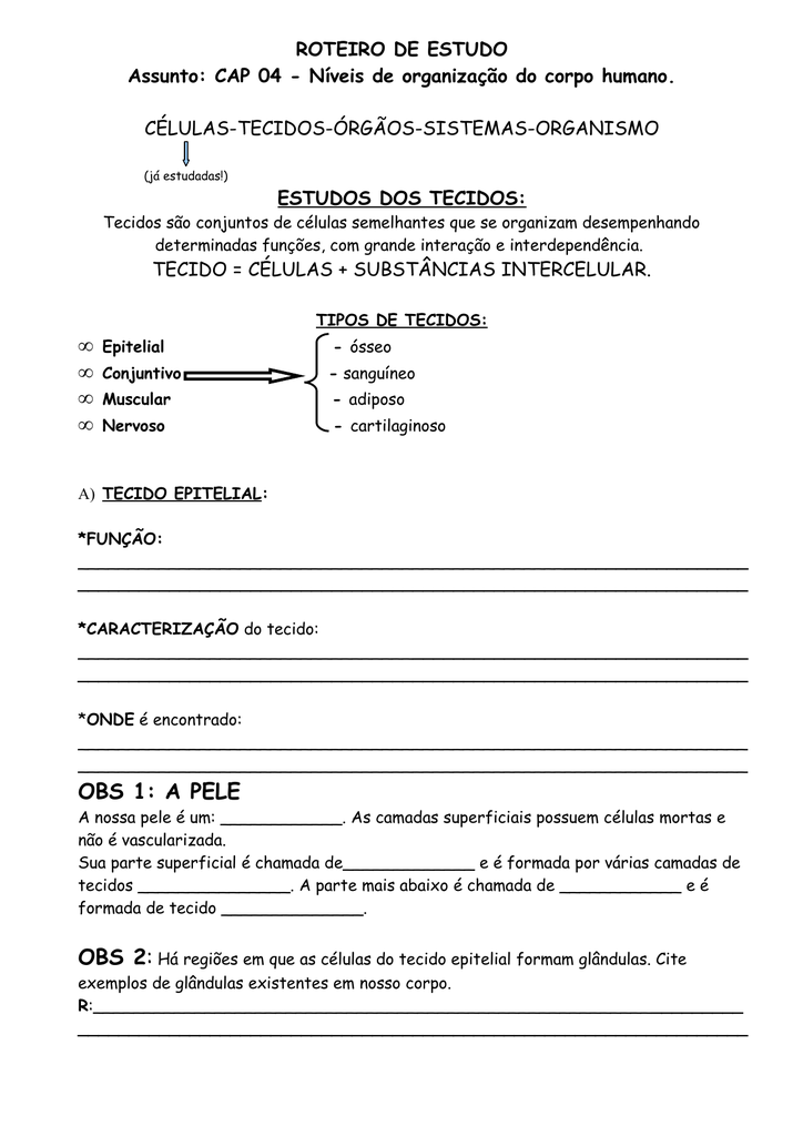 Assunto Cap 04 Niveis De Organizacao Do Corpo Humano