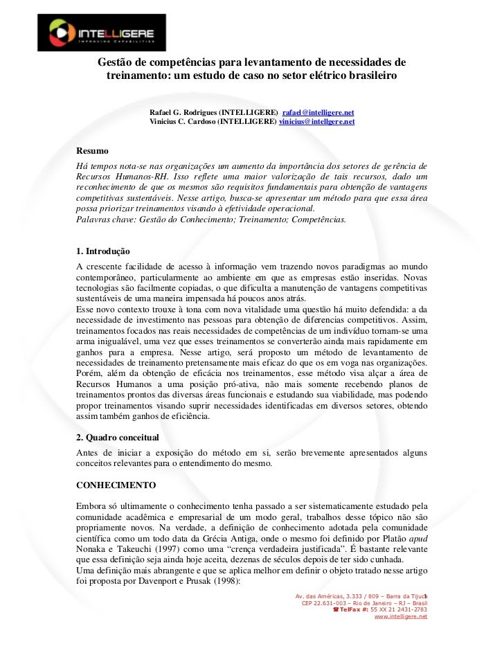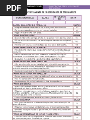 Avaliacao De Necessidades De Treinamento No Trabalho Ensaio De Um
