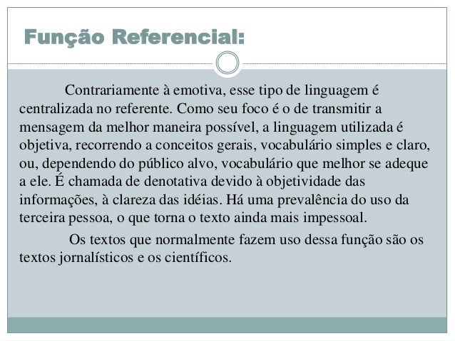 Funcao De Linguagem Funcao Referencial Ou Denotativa Transmite