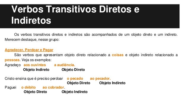Verbos Transitivos Diretos Indiretos E Diretos Indiretos