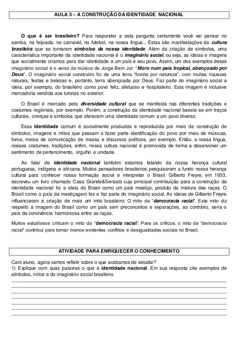 Aula 3 A Construcao Da Identidade Nacional 1º Ano De Sociologia