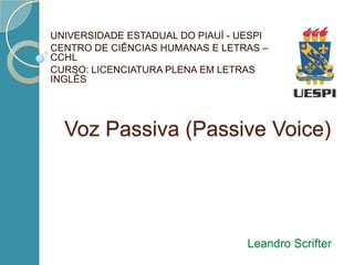Nela ocorre uma inversão da estrutura da oração já que o sujeito passará a ser aquele que sofre com a ação do verbo sendo denominado de sujeito pacientea estruturação em sua forma passiva poderá ser feita de duas formas distintas conhecidas como voz passiva analítica e voz passiva sintética ou.