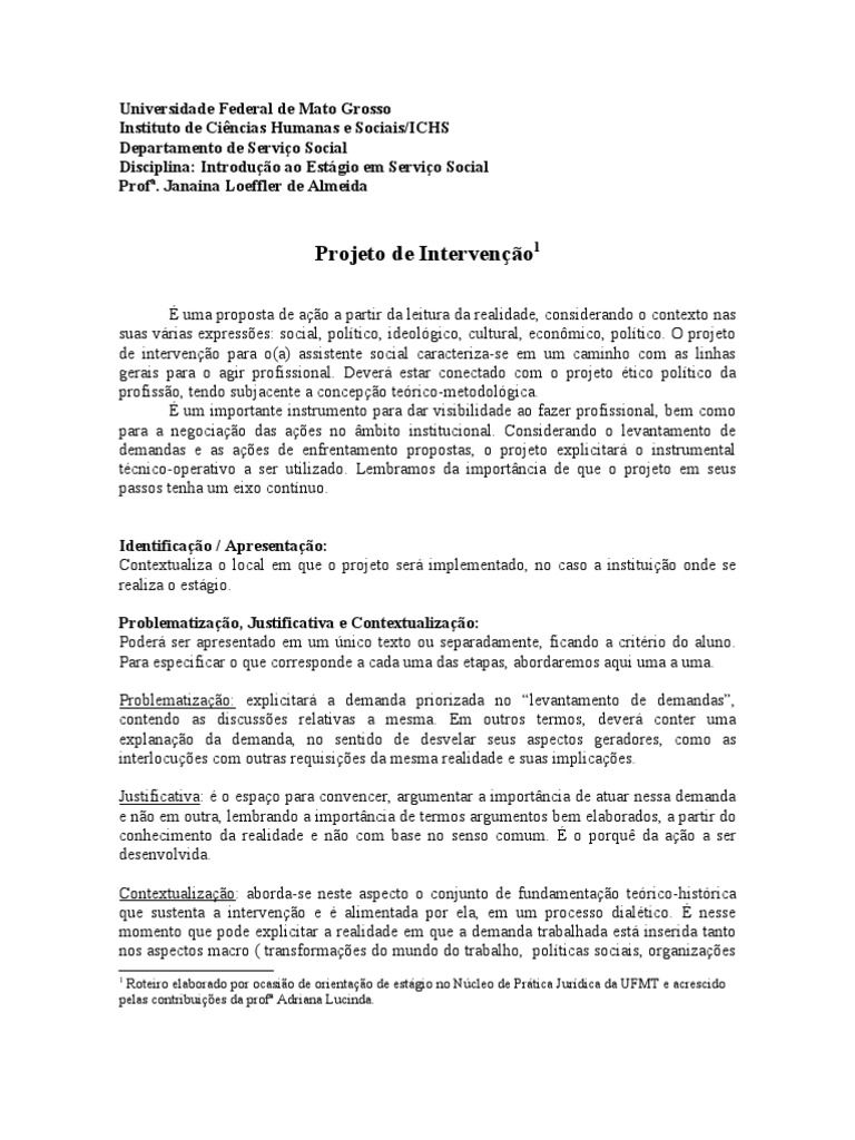 Modelo De Projeto De Intervencao Direito E Legislacao Socia