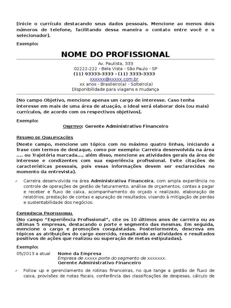 Exemplo De Curriculo Para Diversas Profissoes Meu Curriculo Perfeito