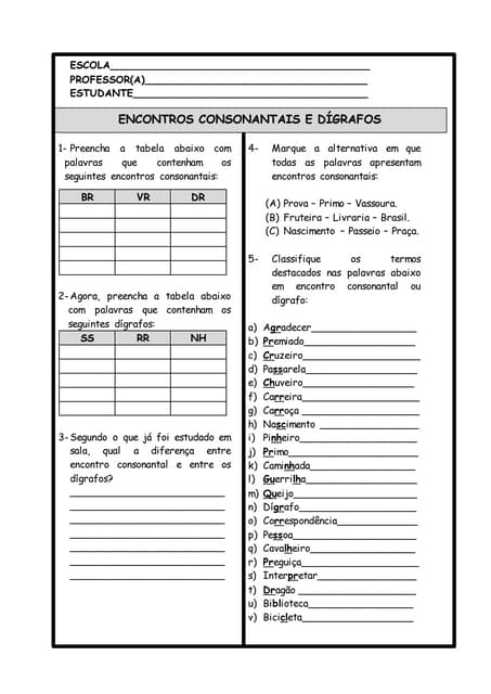 Aqui estão informações detalhadas sobre Exemplo De Encontro Consonantal Em Silabas Separadas.