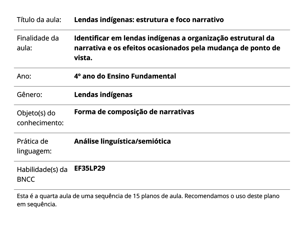 Plano De Aula 4º Ano Lingua Portuguesa Lendas Indigenas