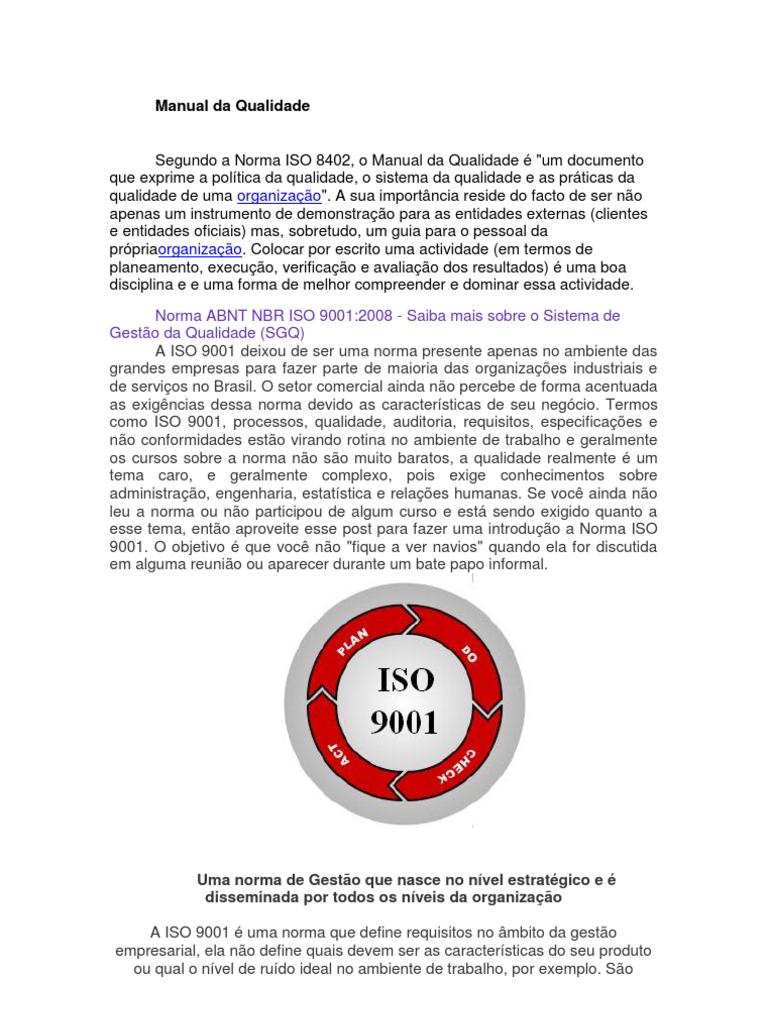 Manual Da Qualidade Resumo Iso Iso 9000 Qualidade Negocios