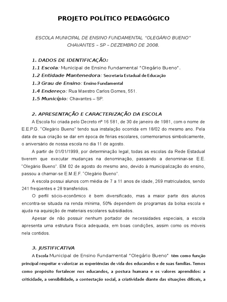 Completo com dados Exemplo De Projeto Politico Pedagogico Educação Infantil.