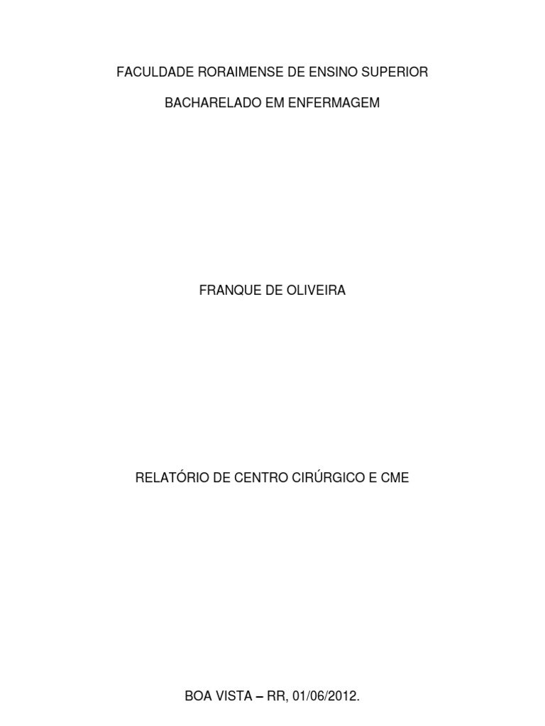 Revisões sobre Exemplo De Relatorio De Enfermagem Em Centro Cirurgico.