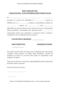 Modelo Termo De Veracidade De Informacoes Prestadas