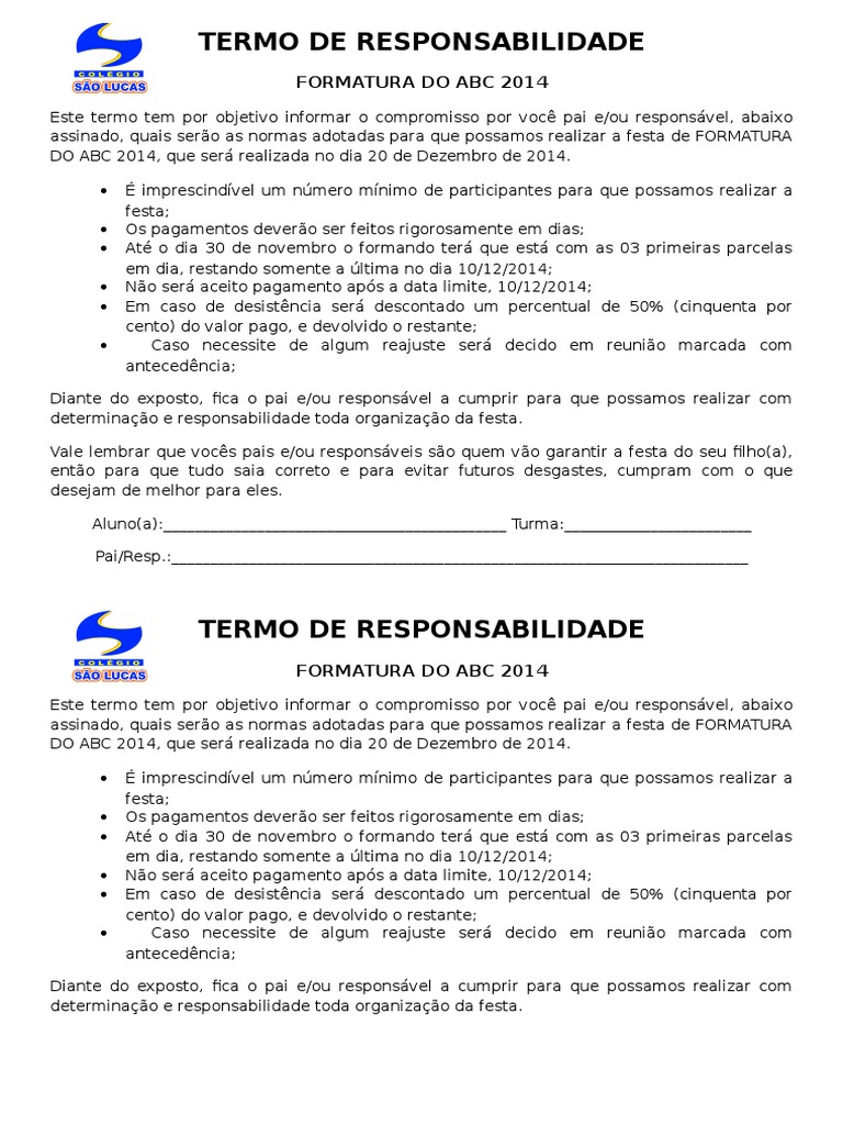 Exemplo De Termo De Responsabilidade Sobre O Servico De Aplicacao