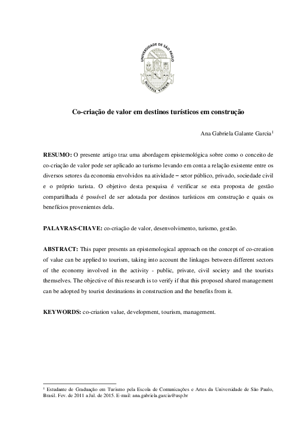 Pdf Co Criacao De Valor Em Destinos Turisticos Em Construcao