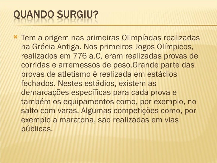 Nos primeiros jogos olímpicos realizados em 776 ac eram realizadas provas de corridas e arremessos de peso.