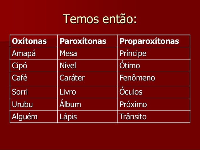 Revisamos sobre Palavras Oxitonas Paroxitonas E Proparoxitonas Acentuadas Exemplos.