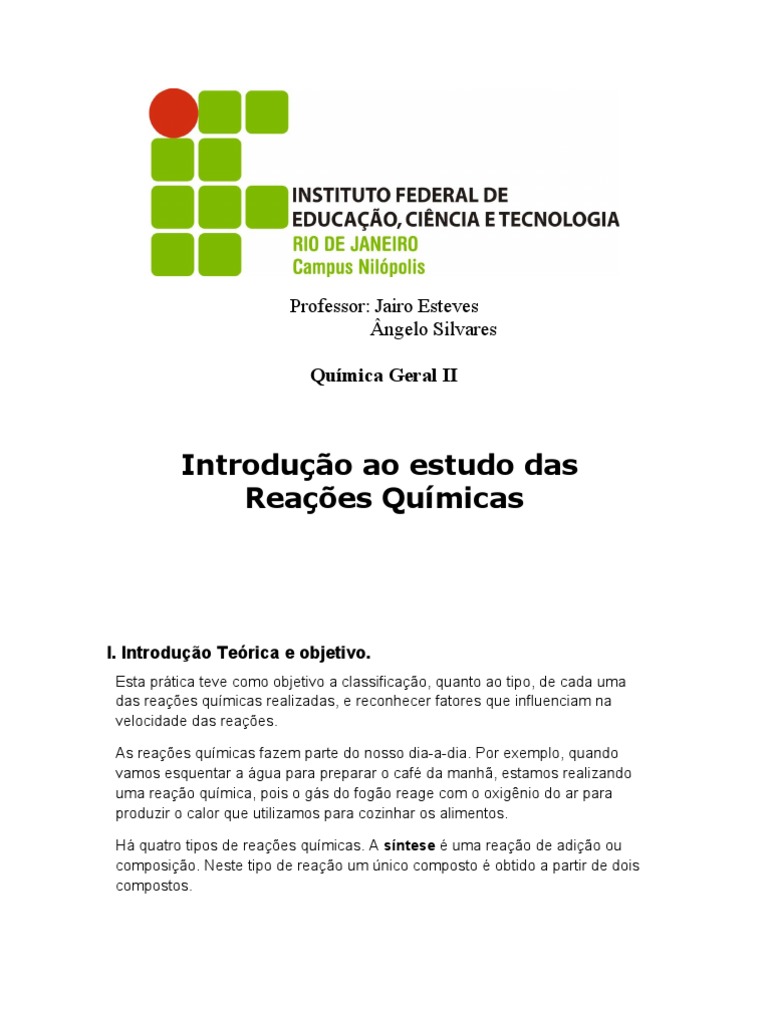 Introd Reacoes Quimicas Introd Reacoes Quimicas Docsity