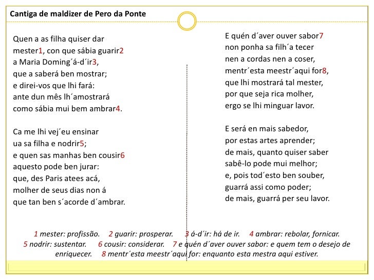 E Cantiga De Maldizer Cantigas Escarnio Cantiga De Amigo E