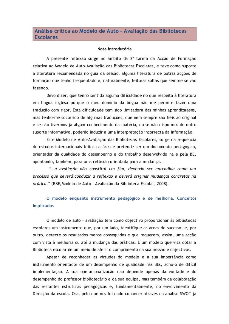 2ª Sessao Comentario Critico Ao Modelo De Auto Avaliacao Da Be