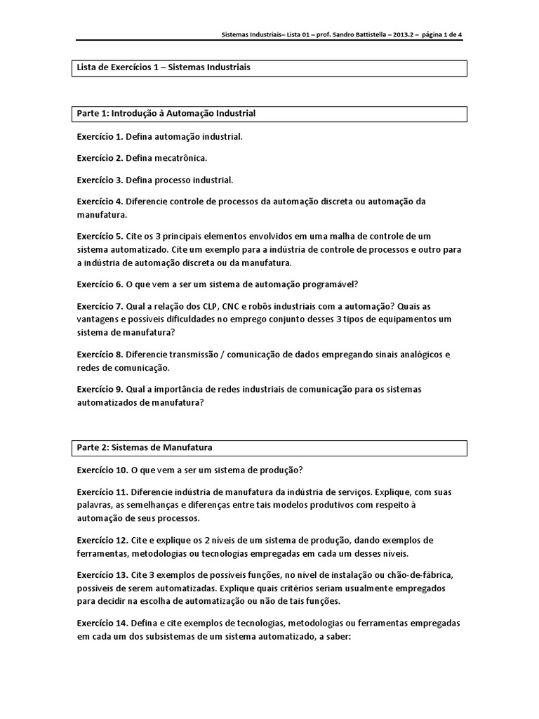 Lista De Exercicios 01 Automacao E Cim Pdf Automacao