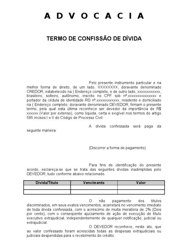 Modelo De Termo De Confissao De Divida Confissao Direito