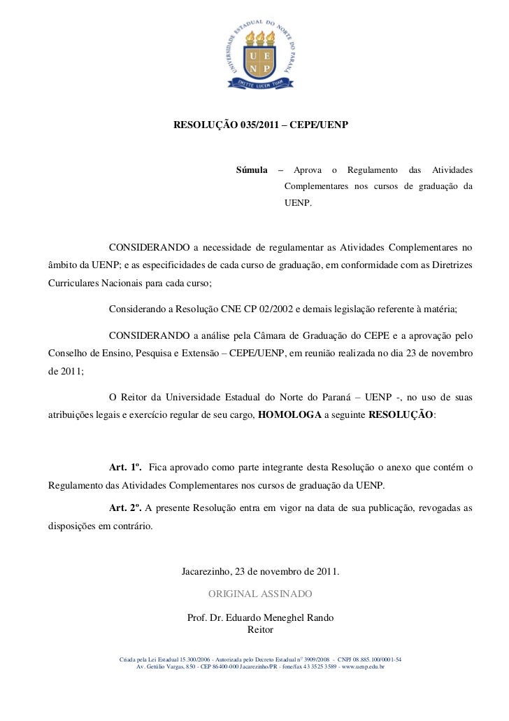 035 2011 Aprova O Regulamento Das Atividades Complementares