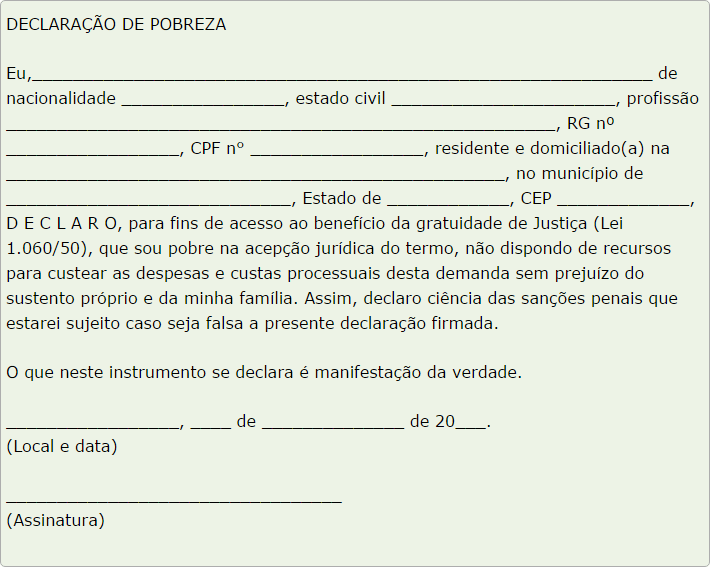 Modelo De Declaracao De Pobreza Generico Judicial Para Casamento