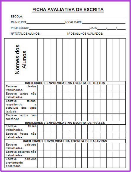 Modelos De Fichas De Avaliacao E Informacoes Do Aluno Ensino