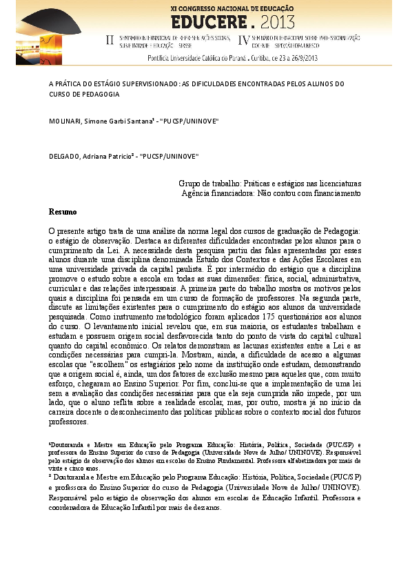Pdf A Pratica Do Estagio Supervisionado As Dificuldades