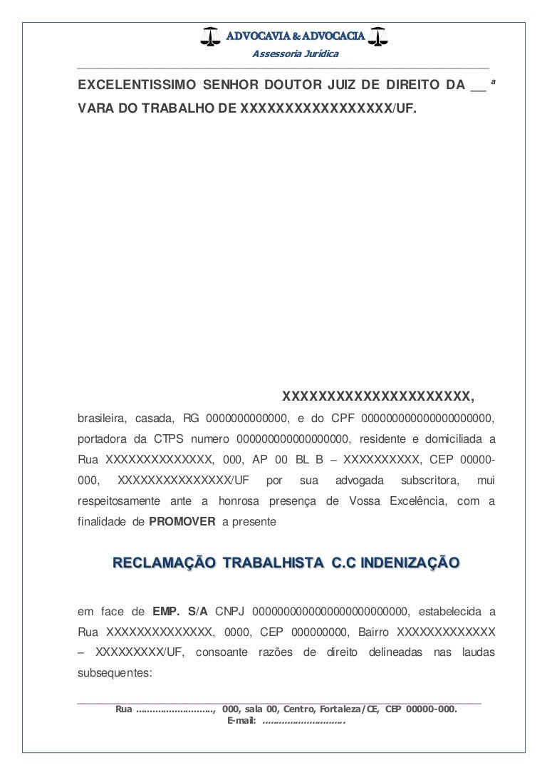 Exemplo De Peticao Inicial De Reclamacao Trabalhista Varios Exemplos