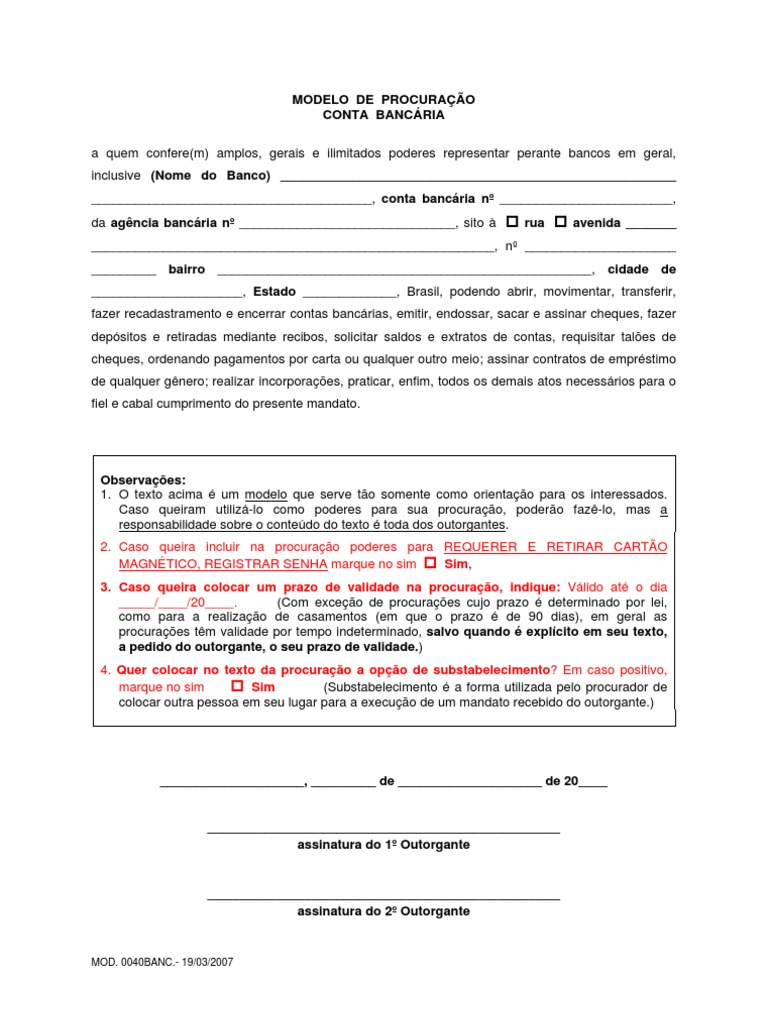 Modelo De Procuracao Bancaria Conta De Transacao Business