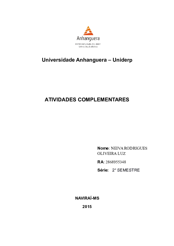 Se alguém estiver procurando por Exemplo De Relatorio Atividades Complementares Anhanguera.