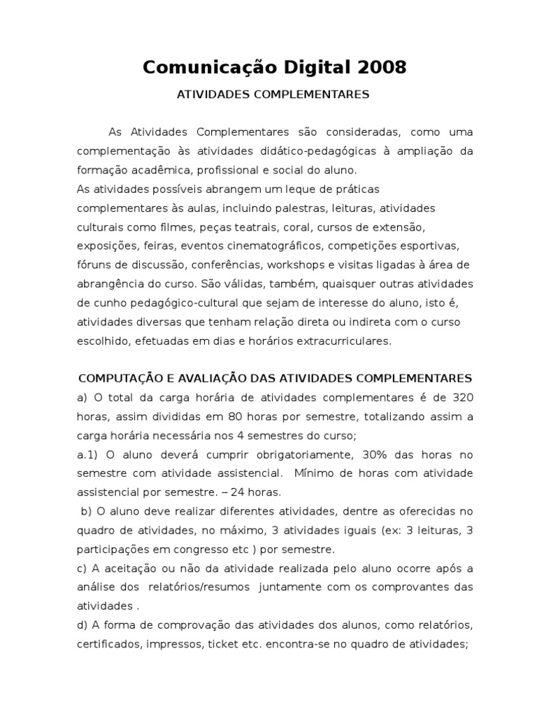 Modelo Regulamento De Atividades Complementares Do Curso De