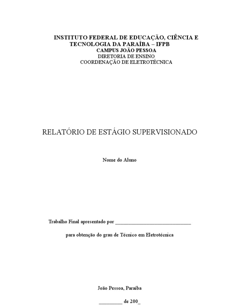 Aqui estão recomendações sobre Exemplo De Relatorio De Estagio Tecnico Em Eletromecanica.