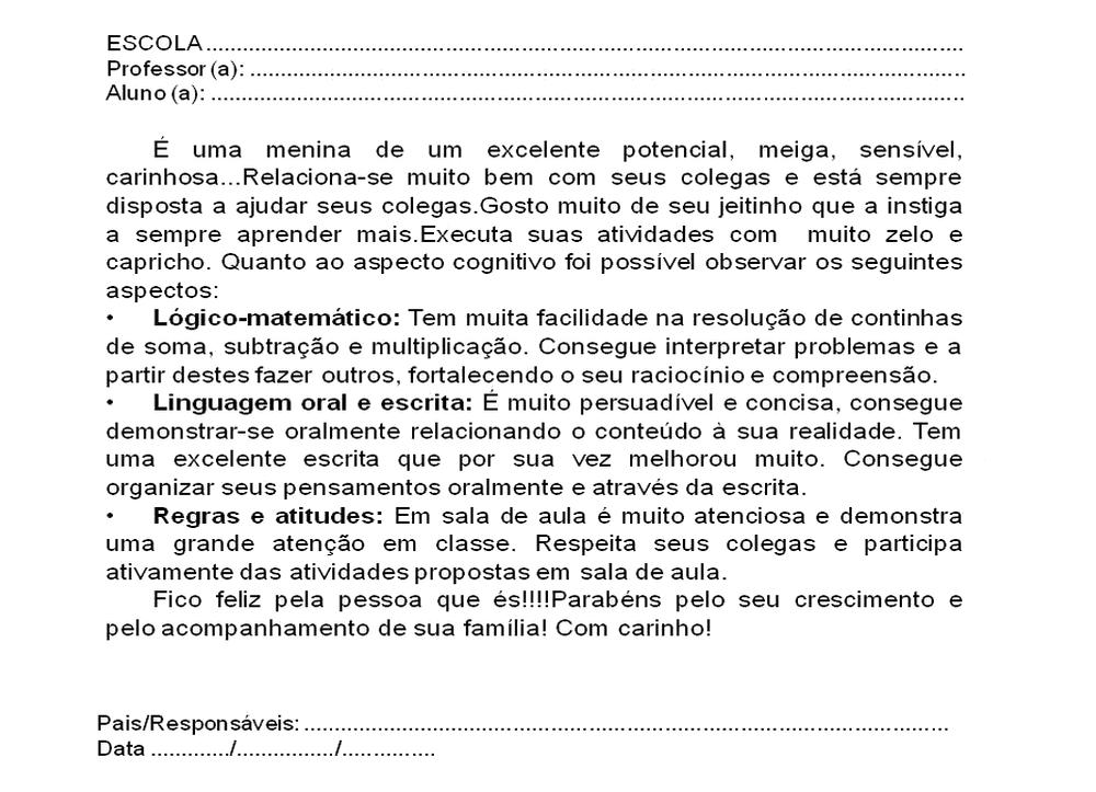 15 Opcoes De Modelo De Relatorio Individual Do Aluno Jet Dicas