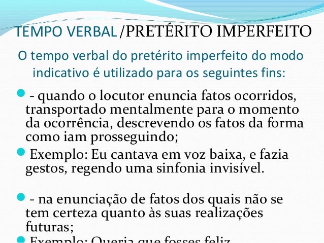 Pretrito Imperfeito Indicativo Formao O Pretrito