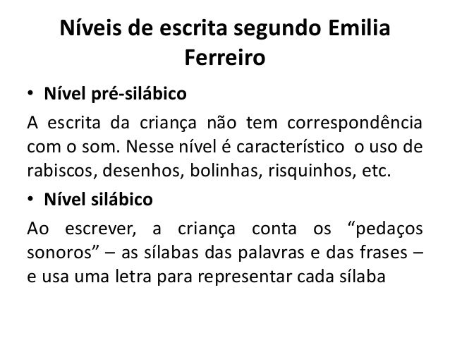 Revisões sobre Níveis De Escrita Segundo Emília Ferreiro Com Exemplos.