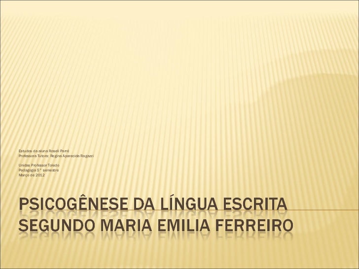 Psicogenese Da Lingua Escrita Segundo Maria Emilia Ferreiro