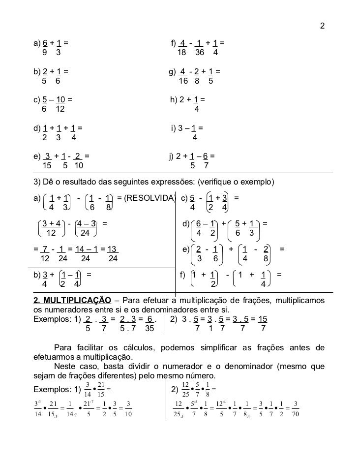 Operacoes Com Fracoes Adicao Subtracao E Multiplicacao