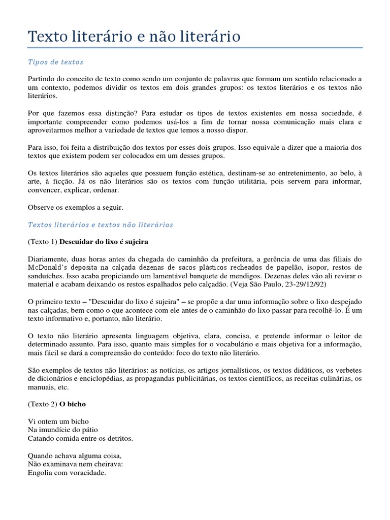 Completo com imagens Texto Literário E Não Literário Exemplos.