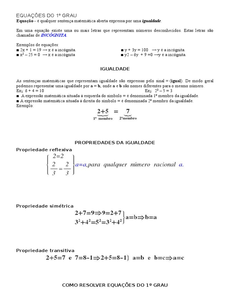 Equacao Do 1 Grau Uma Ou Duas Incognitas