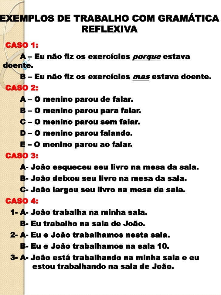Um exemplo é uma demonstração com o objetivo de contar a alguém sobre como uma tarefa ou trabalho é realizado.