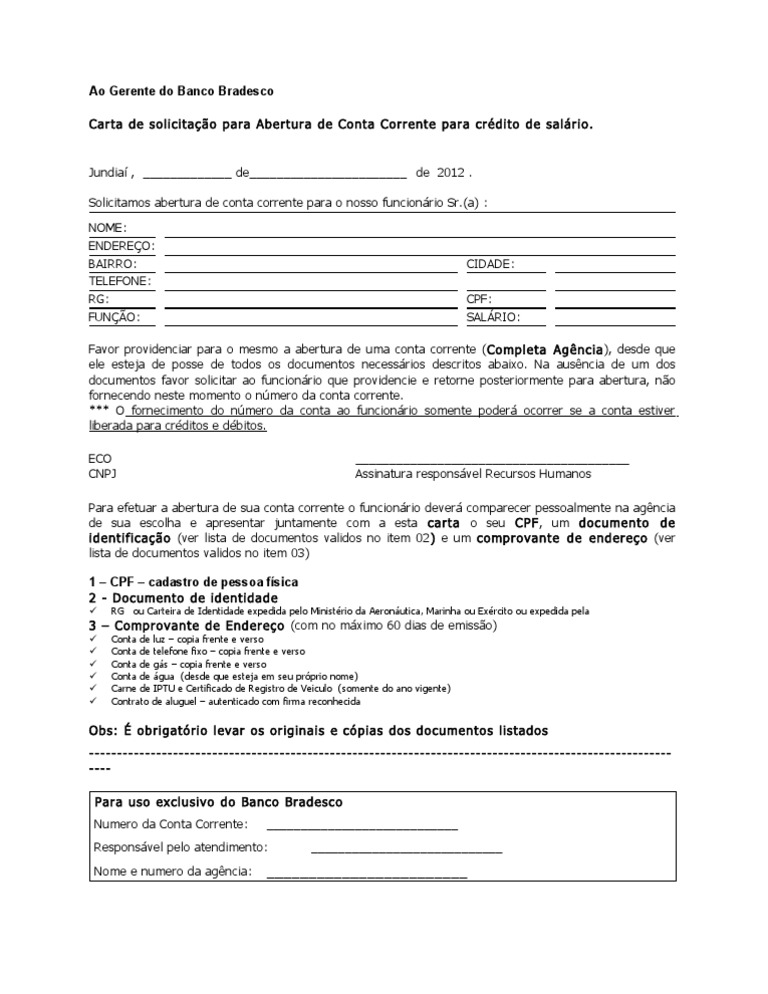 Modelo De Carta Para Abertura De Conta Salario Modelosparatudo