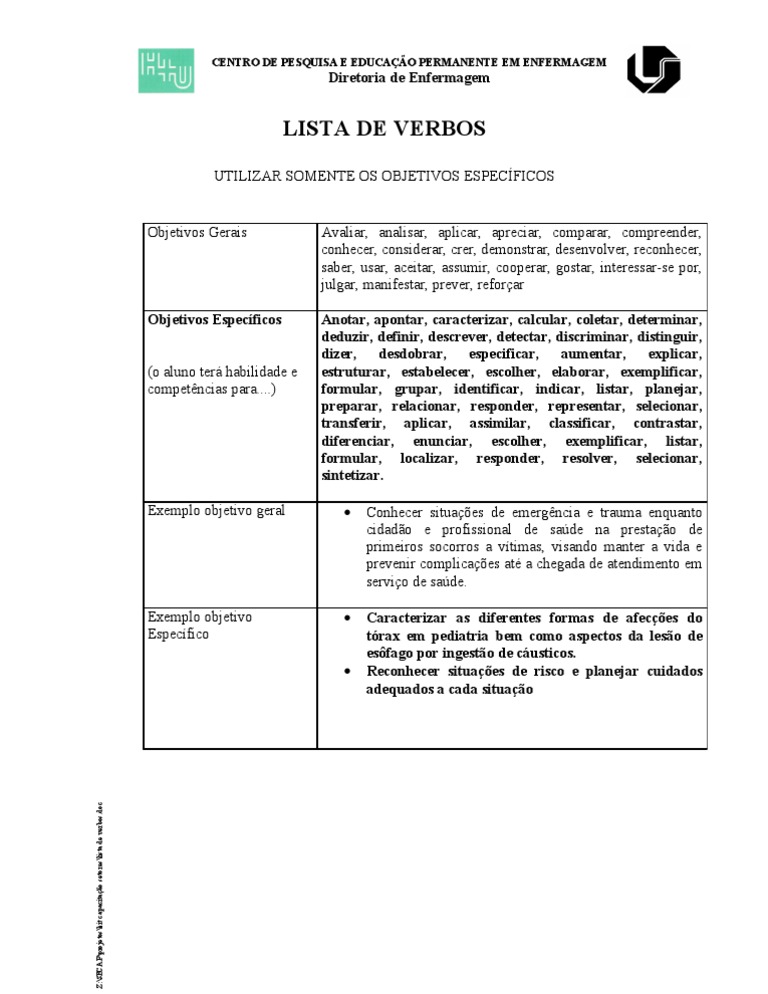 Lista De Verbos Centro De Pesquisa E Educacao Permanente Em
