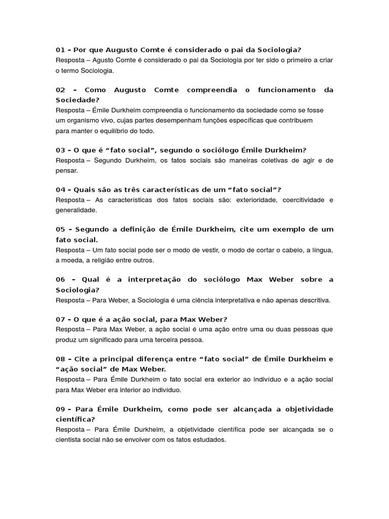 Emile Durkheim Questoes De Vestibulares Portal Do Vestibulando