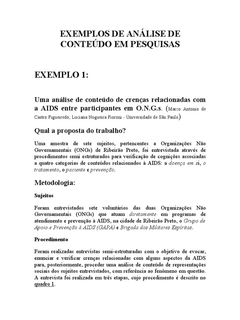 Exemplos De Analise De Conteudo Em Pesquisas