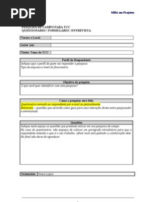 Diversas informações sobre Exemplo De Pesquisa De Campo Tcc.