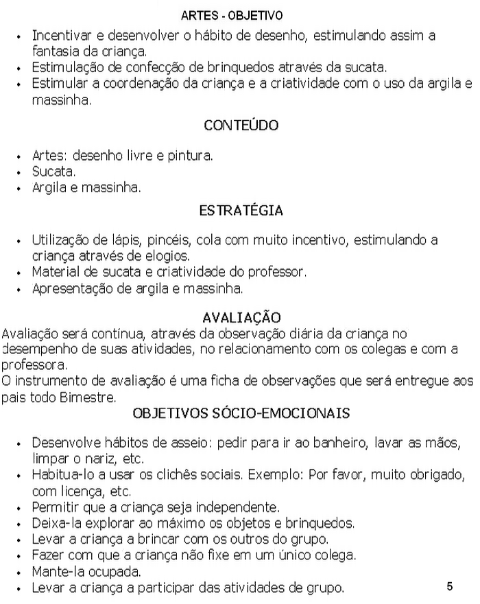 Planejamento Anual Educacao Infantil Modelo So Escola